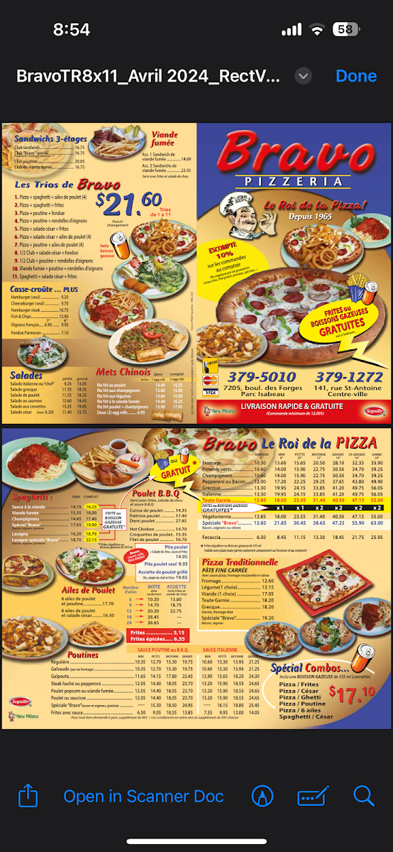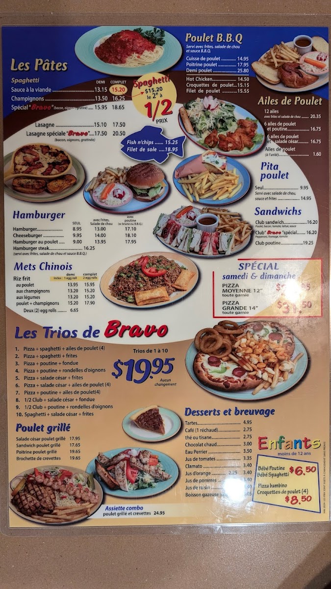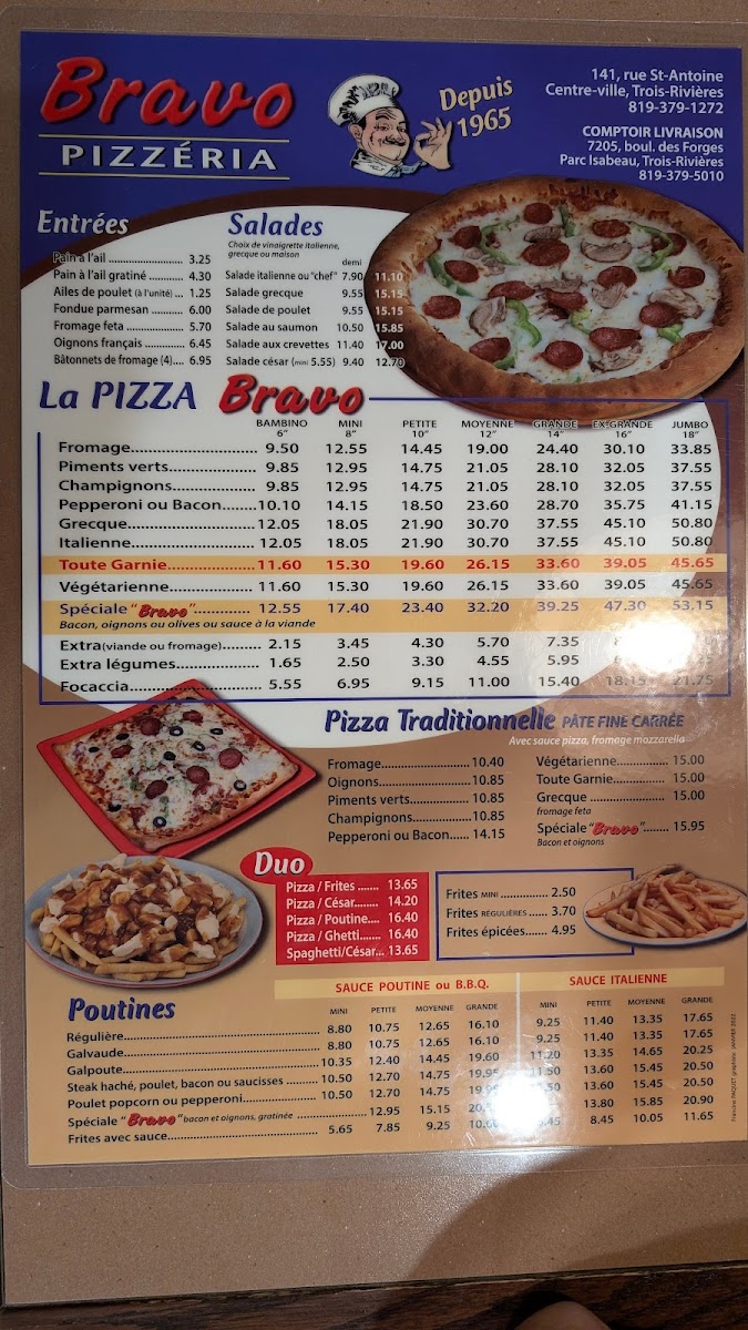 Welcome to Bravo Pizzeria, your go-to destination for exceptional pizza and more, nestled at 141 Rue St Antoine in Trois-Rivières, Quebec. Our menu boasts a variety of mouthwatering options that keep customers returning for more. The standout is undoubtedly our signature Bravo-style pizza, praised for its generous portions and delightful flavors.